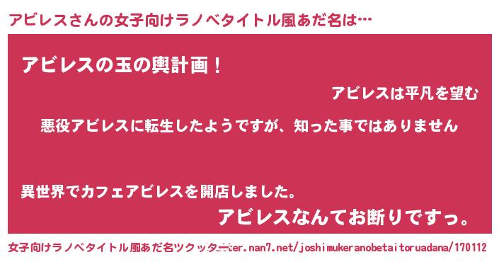 | 胡散臭い通販商品みたいなあだ名 | 『あなたにだけ特別に提供する限定10本のレアな日本酒…その名も「アビレス」』 |