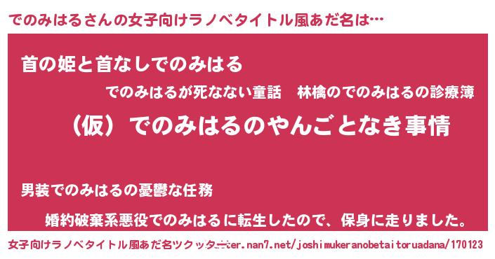 | ヘコむあだ名 | 『でのにー』『でのみはる(小並感)』 |