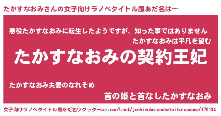 | 男性向けラノベタイトル風あだ名 | 『誰もが恐れるあのたかすなおみが、ぼくの専属メイドになるようです。』 |