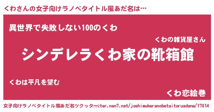 | 男性向けラノベタイトル風あだ名 | 『冴えないくわの育てかた』 |
