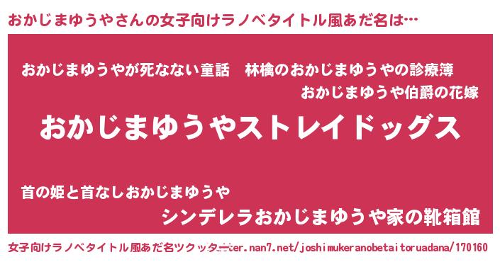 | 男性向けラノベタイトル風あだ名 | 『Re:おかじまゆうやから始める異世界生活』 |