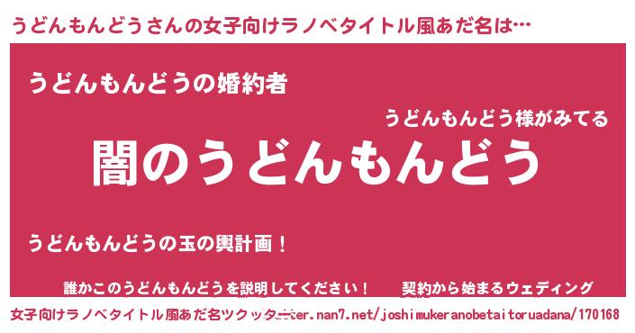 | 男性向けラノベタイトル風あだ名 | 『Re:うどんもんどうから始める異世界生活』 |
