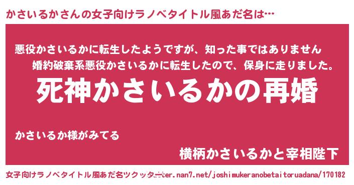 | ヒーロー風カッコイイあだ名 | 『慈愛の使者かさいるか』『仮面カサダー』 |