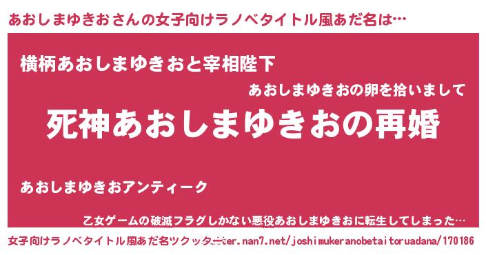 | 男性向けラノベタイトル風あだ名 | 『ノーゲーム・ノーアオシマユキオ』 |