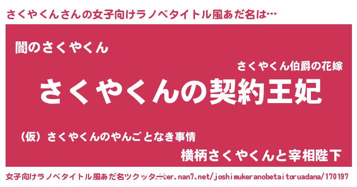 | 意味不明あだ名 | 『永久保存さくやくん』『自称さくやくん』 |