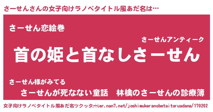 | 男性向けラノベタイトル風あだ名 | 『はたらくさーせんさま!』 |