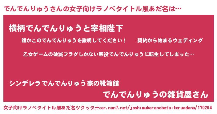 | 意味不明あだ名 | 『住所不定無職でんでんりゅう(5歳)』 |
