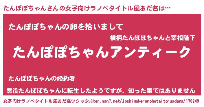 | 男性向けラノベタイトル風あだ名 | 『魔法科高校のたんぽぽちゃん』 |