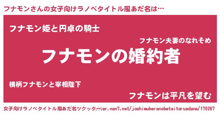| ファンタジー風あだ名 | 『エターナルフナモンー』『フナフェル』 |