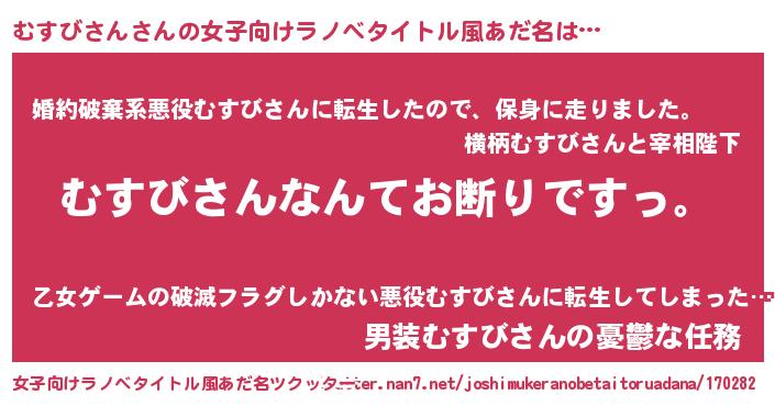 | 肩書あだ名 | 『むすびさん総統』『むすびさん上級大将』 |