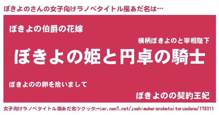 | 胡散臭い通販商品みたいなあだ名 | 『モテモテ間違いなしブレスレット…その名も「ぼきよの」』 |