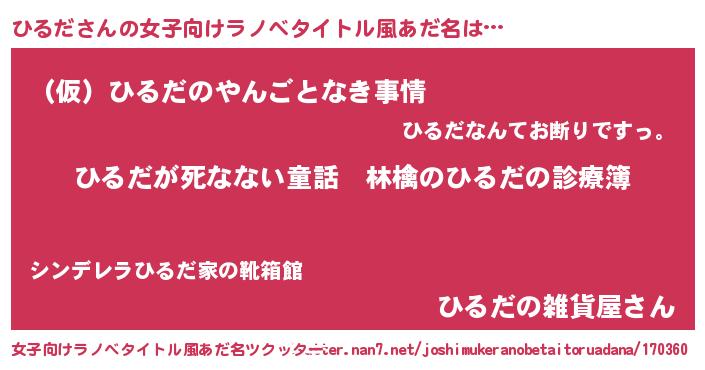 | 意味不明あだ名 | 『住所不定無職ひるだ(3歳)』『自称ひるだ』 |
