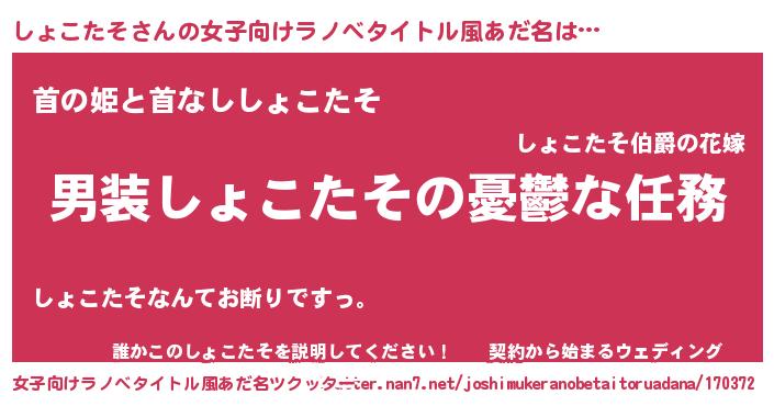 | 胡散臭い通販商品みたいなあだ名 | 『億万長者になれるブレスレット…その名も「しょこたそ」』 |