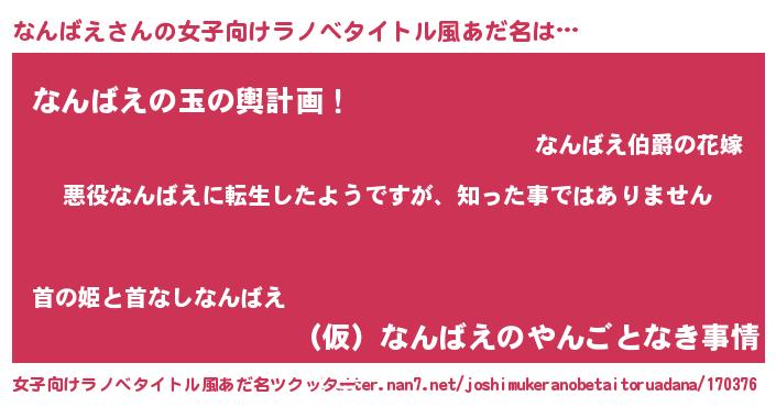 | 意味不明あだ名 | 『住所不定無職なんばえ(7歳)』 |