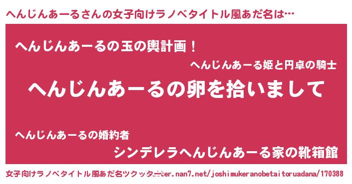 | 男性向けラノベタイトル風あだ名 | 『へんじんあーるの嫁は女の子じゃないと思った?』 |