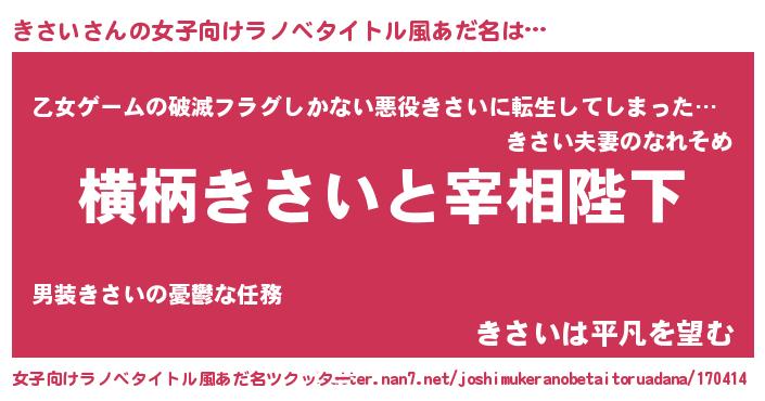男性向けラノベタイトル風あだ名 | 『きさいに滅ぼされるだけの簡単なお仕事です』 |