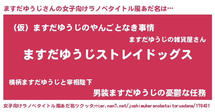 | 男性向けラノベタイトル風あだ名 | 『Re:ますだゆうじから始める異世界生活』 |