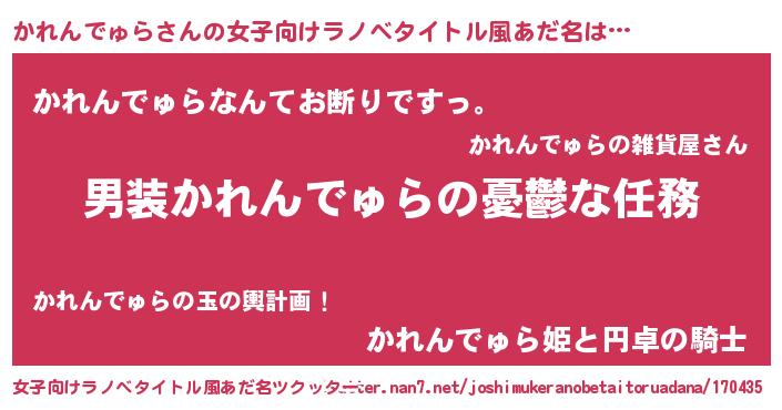 | 意味不明あだ名 | 『自称かれんでゅら』 |