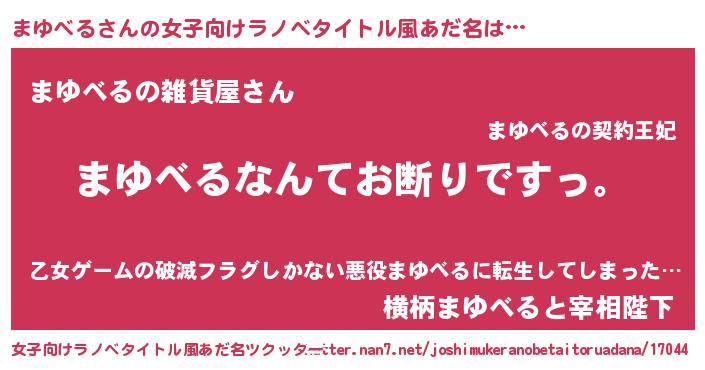 | 男性向けラノベタイトル風あだ名 | 『魔法科高校のまゆベる』 |