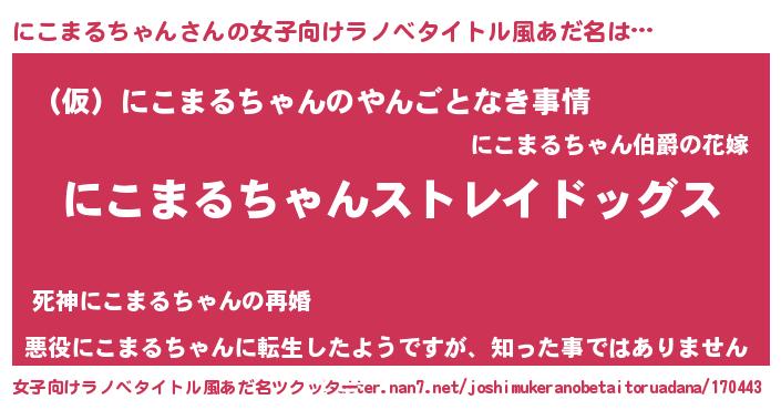 | 男性向けラノベタイトル風あだ名 | 『Re:にこまるちゃんから始める異世界生活』 |