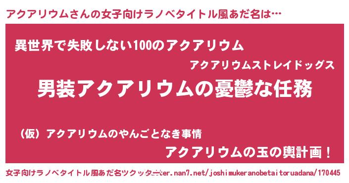 | 男性向けラノベタイトル風あだ名 | 『冴えないアクアリウムの育てかた』 |