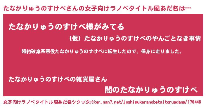 | 男性向けラノベタイトル風あだ名 | 『タナカリュウノスケベスレイヤー』 |