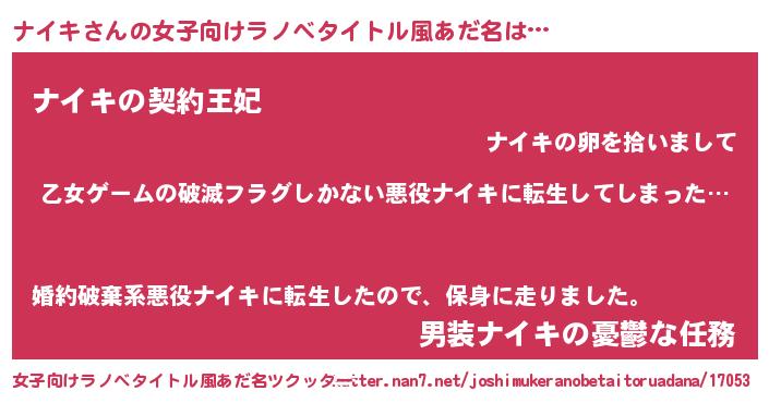 | ファンタジー風あだ名 | 『ヴァルナイーナ』『ナイディッシュ』 |