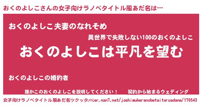 | 胡散臭い通販商品みたいなあだ名 | 『信頼と実績のサプリメント…その名も「おくのよしこ」』 |