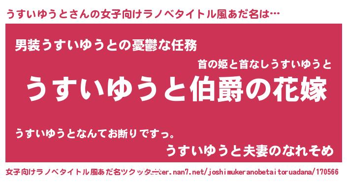 | 男性向けラノベタイトル風あだ名 | 『やはりうすいゆうとの青春ラブコメはまちがっている 』 |