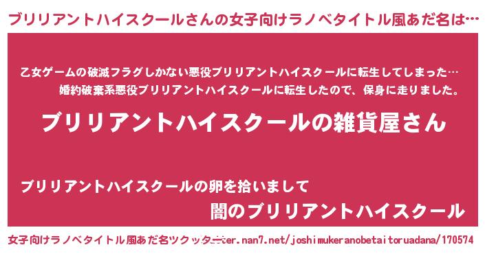 | 男性向けラノベタイトル風あだ名 | 『やはりブリリアントハイスクールの青春ラブコメはまちがっている 』 |