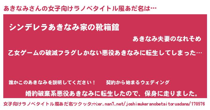 | 意味不明あだ名 | 『住所不定無職あきなみ(12歳)』 |