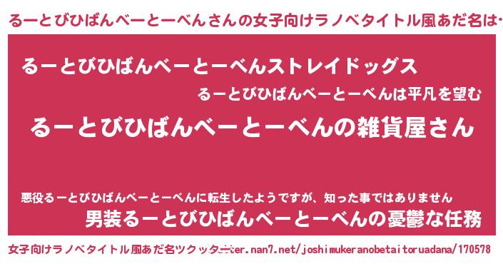 男性向けラノベタイトル風あだ名 | 『やはりるーとびひばんべーとーべんの青春ラブコメはまちがっている 』 |