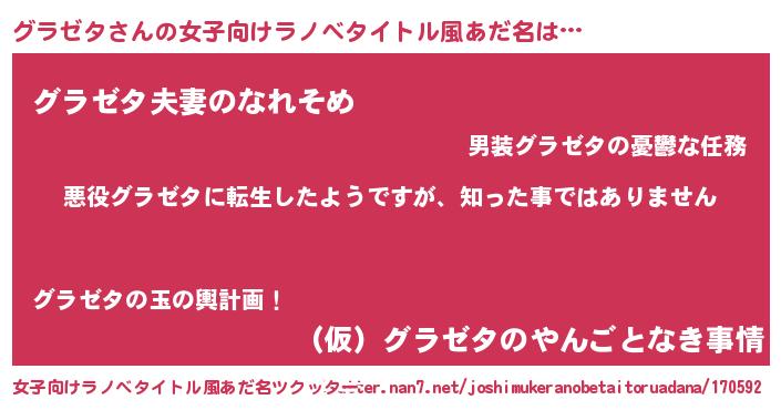 | 男性向けラノベタイトル風あだ名 | 『この素晴らしい世界にグラゼタを!』 |