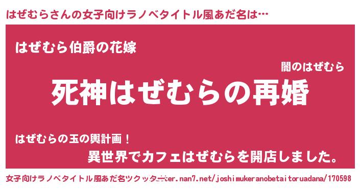 | 男性向けラノベタイトル風あだ名 | 『ノーゲーム・ノーハゼムラ』 |