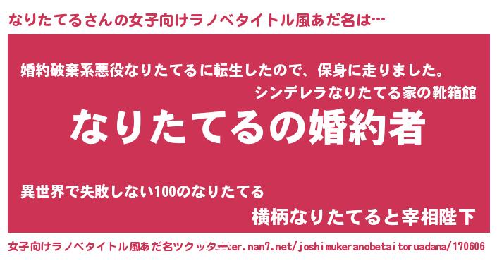 | ファンタジー風あだ名 | 『エターナルナリタテルー』『ゼナリトゥ』 |