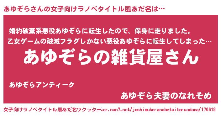 | ファンタジー風あだ名 | 『エターナルアユゾラー』『クインアット』 |