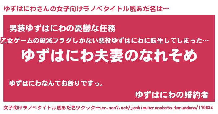 | 男性向けラノベタイトル風あだ名 | 『おまえをオタクにしてやるから、俺をゆずはにわにしてくれ! 』 |