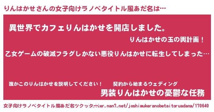 | 男性向けラノベタイトル風あだ名 | 『魔弾の王とりんはかせ』 |