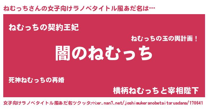 | 胡散臭い通販商品みたいなあだ名 | 『芸能人もオススメする高麗人参…その名も「ねむっち」』 |