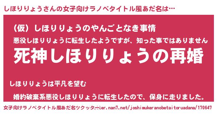 | 胡散臭い通販商品みたいなあだ名 | 『モンドセレクションを受賞したイリジウム磁石…その名も「しほりりょう」』 |
