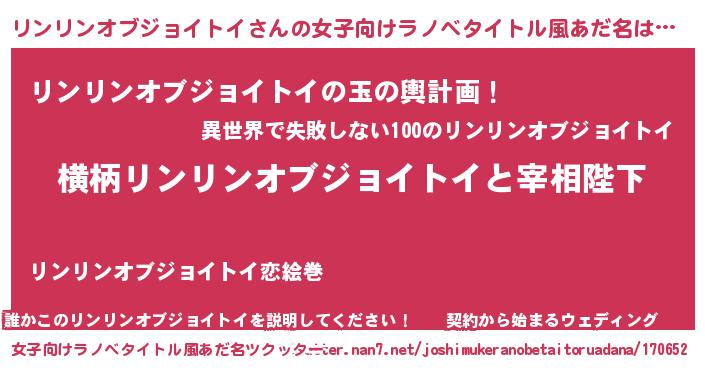 | 男性向けラノベタイトル風あだ名 | 『リンリンオブジョイトイに滅ぼされるだけの簡単なお仕事です』 |