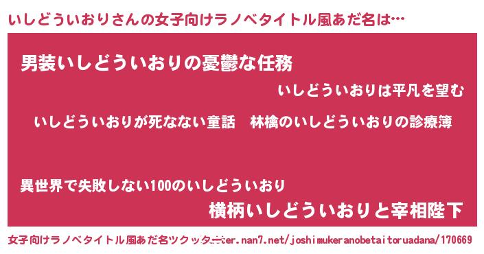 | 意味不明あだ名 | 『住所不定無職いしどういおり(8歳)』 |