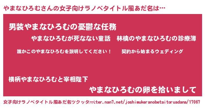 | 男性向けラノベタイトル風あだ名 | 『ヤマナヒロムアートオンライン』 |