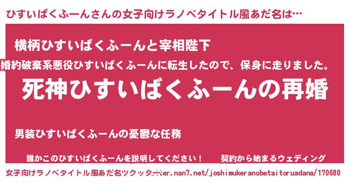 | 男性向けラノベタイトル風あだ名 | 『ノーゲーム・ノーヒスイバクフーン』 |