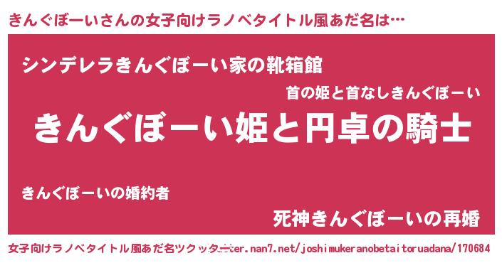 | 男性向けラノベタイトル風あだ名 | 『キングボーイアートオンライン』 |