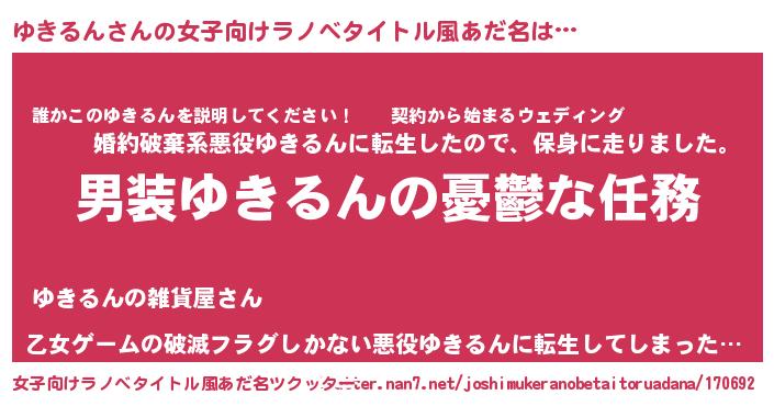 | 胡散臭い通販商品みたいなあだ名 | 『モテモテ間違いなしブレスレット…その名も「ゆきるん」』 |
