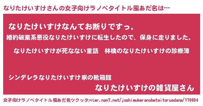 | 男性向けラノベタイトル風あだ名 | 『魔弾の王となりたけいすけ』 |