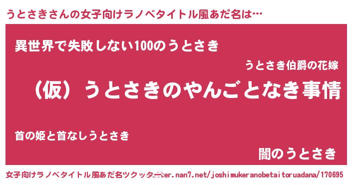 | 男性向けラノベタイトル風あだ名 | 『うとさきの憂鬱』 |