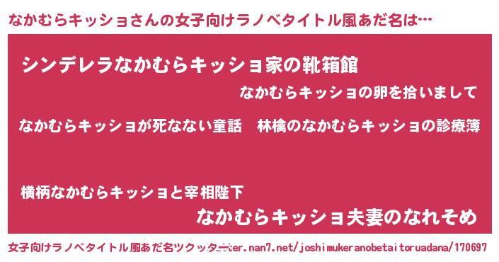 | 男性向けラノベタイトル風あだ名 | 『魔弾の王となかむらキッショ』 |
