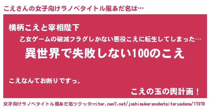 | 男性向けラノベタイトル風あだ名 | 『こえという概念が存在しない退屈な世界 』 |